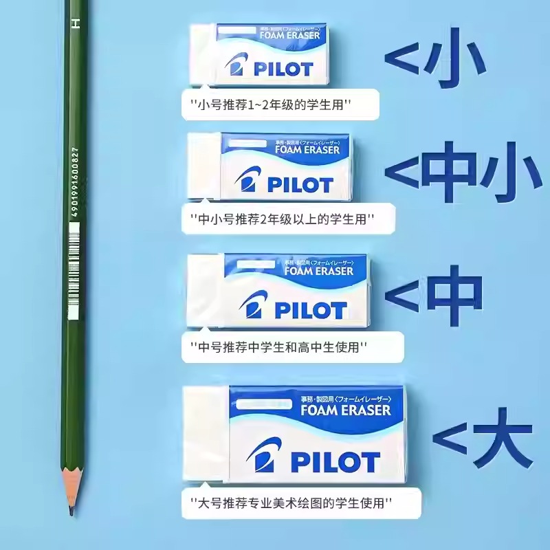 日本pilot百乐橡皮组合套装学生用泡沫橡皮擦不留痕无碎屑擦得干净素描美术小学生绘图铅笔檫大块官方正品
