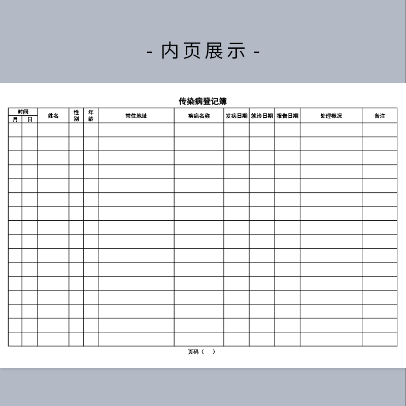 传染病登记簿住址分布跟踪疫情防控学校单位疾病记录本消毒观察检测门诊药店药房医院发热病人患者登记本台账