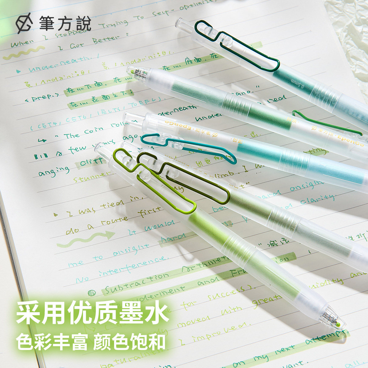 笔方说五彩斑斓绿笔套装高颜值速干顺滑按动中性笔学生专用签字笔