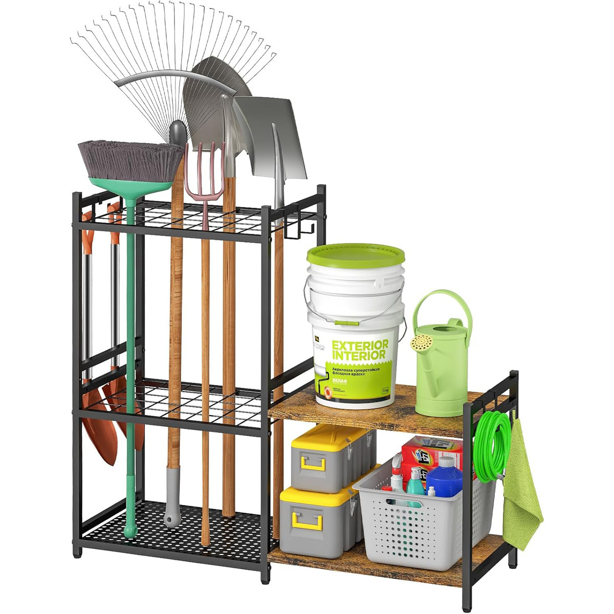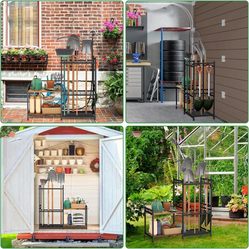 18n2层木架子用于庭院工具整理器,重型花园工具架车库存储黑色其