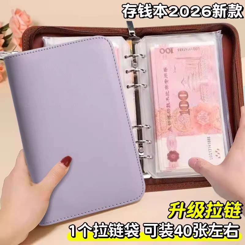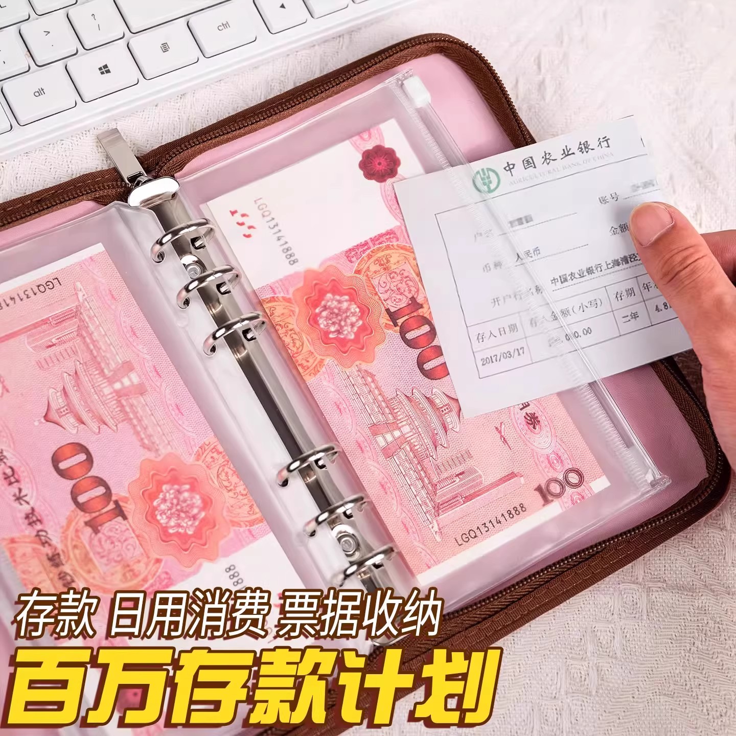 现金儿童理财存钱本2025年新款百元收藏册网红记账本大容量多功能防水人民币5万元存钱夹钱册存钱袋带拉链包