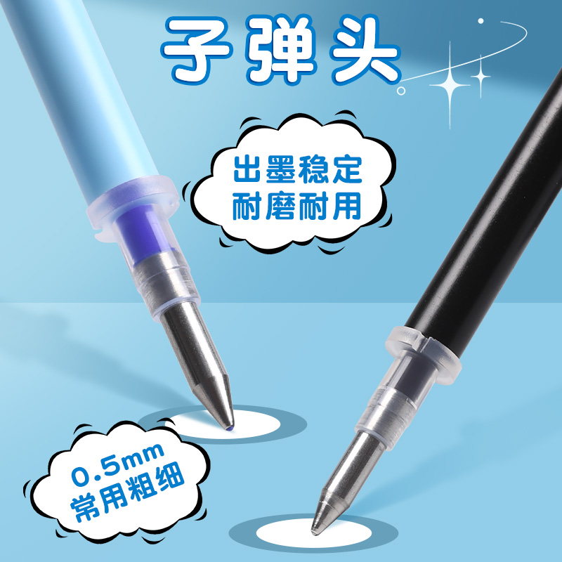 晨光热可擦中性笔按动笔芯0.5mmST笔头晶蓝黑色蓝色笔芯大容量易摩擦子弹头可擦笔替换芯小学生专用圆珠笔芯