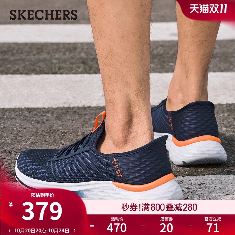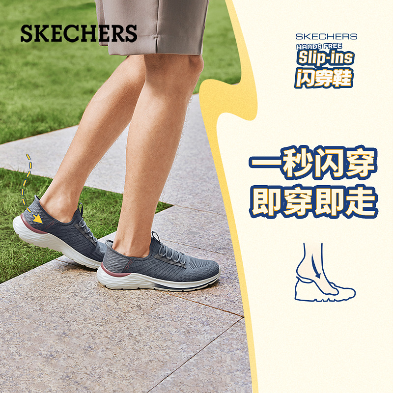 斯凯奇闪穿鞋|秋新款男脚宽脚胖缓震厚底休闲运动鞋一脚蹬跑步鞋