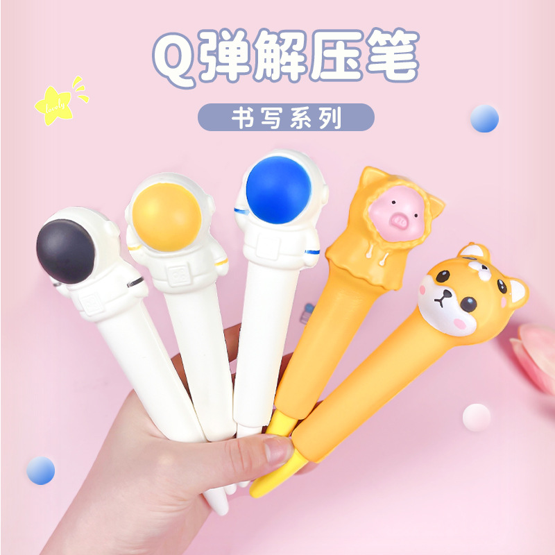 新款创意解压笔减压笔 小猪卡通学生发泄笔慢回弹笔可爱中性笔