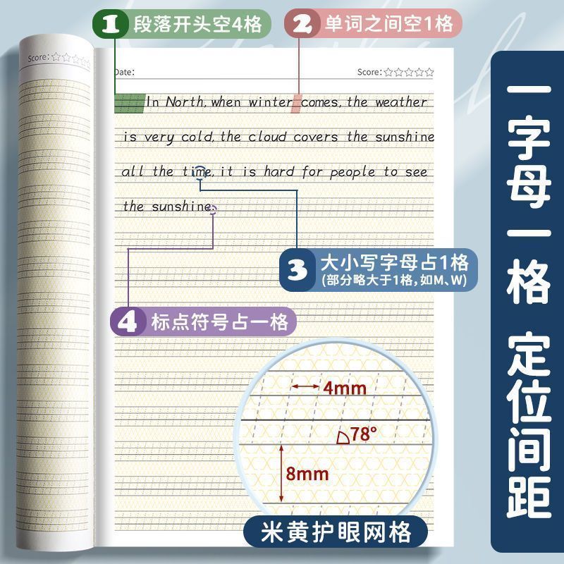 牛皮学生英语初级定位书写本英语练字规范作文英文定格练习本英语定格练习本单词正字