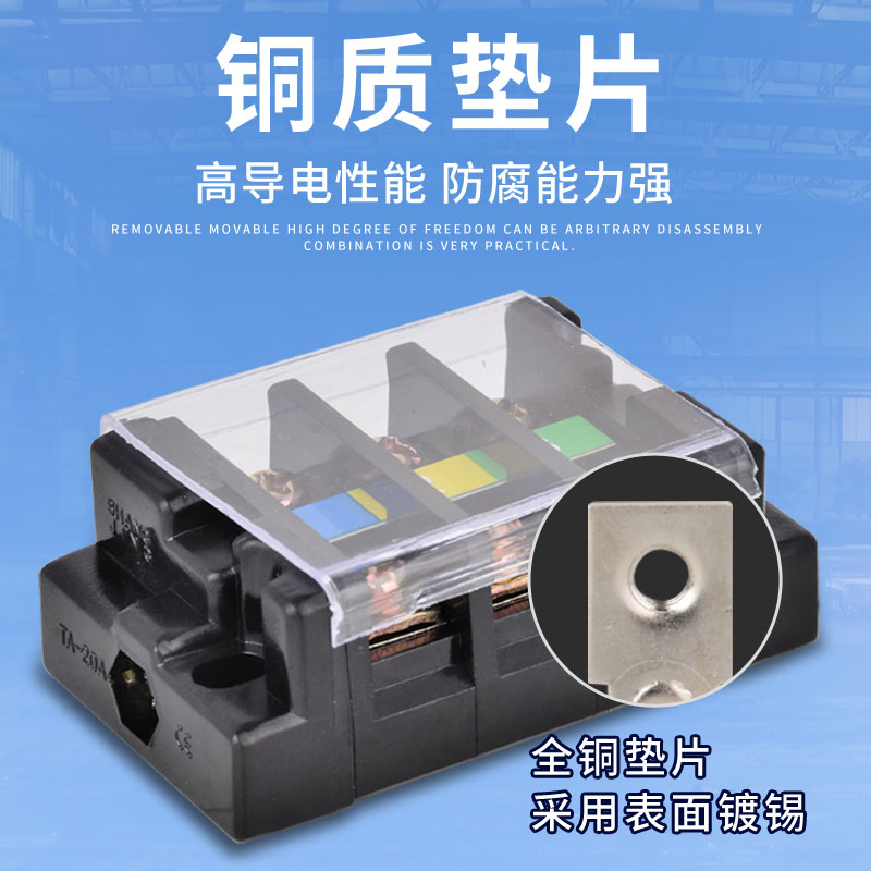 配电箱接线排接线端子排TA-2003组合式3位接线柱并线器20A接线座
