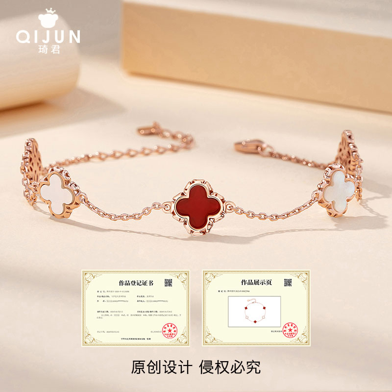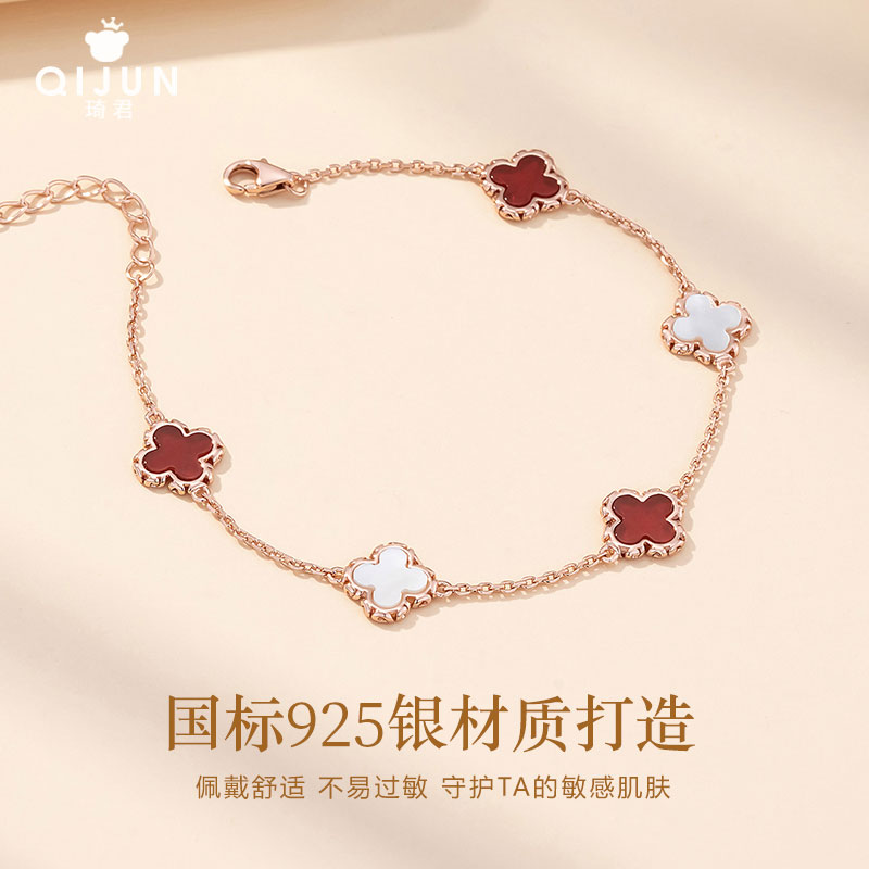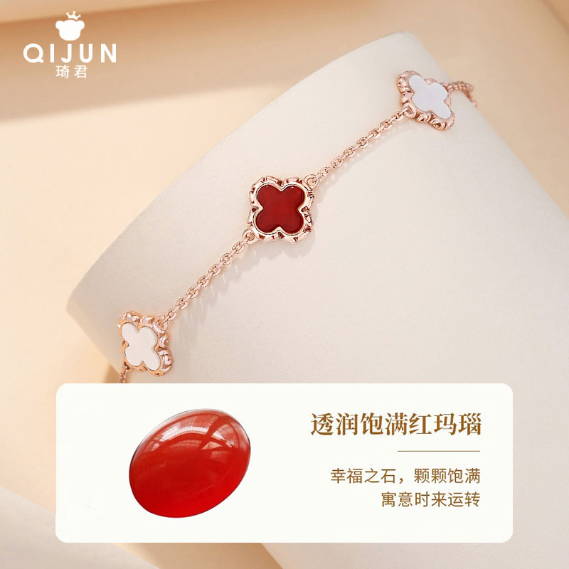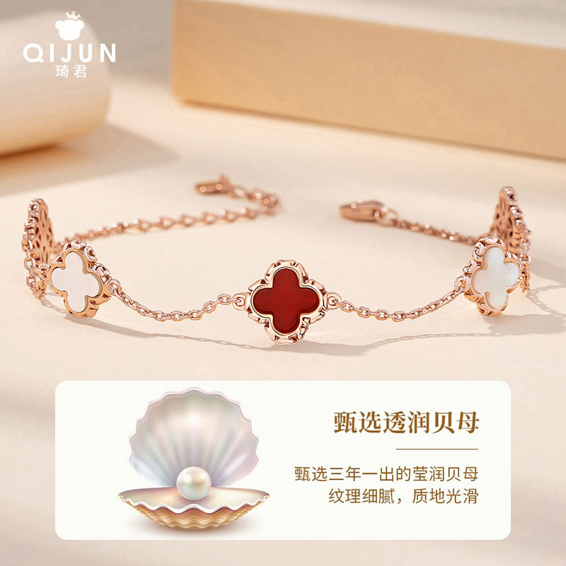 情人节四叶草手链轻奢送女友五花手饰新款玛瑙琦君生日礼物高级感