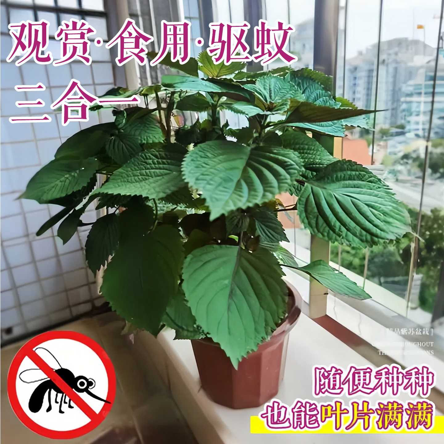 紫苏苗盆栽可食用厨房香草香料植物新鲜紫苏叶即食用盆栽罗勒绿植