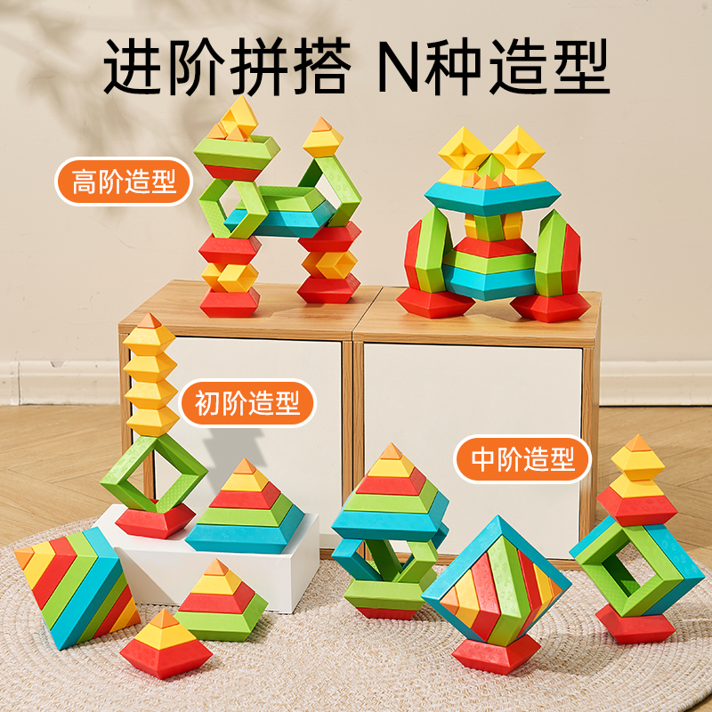 乐乐鱼百变积木金字塔叠叠乐鲁班塔2-6岁儿童拼装早教益智玩具