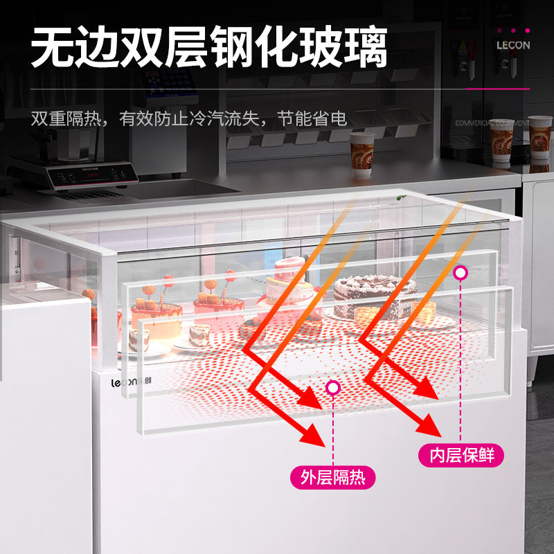 热销乐创商用蛋糕冷藏展示柜单层直角西点甜品风冷无边框保鲜柜