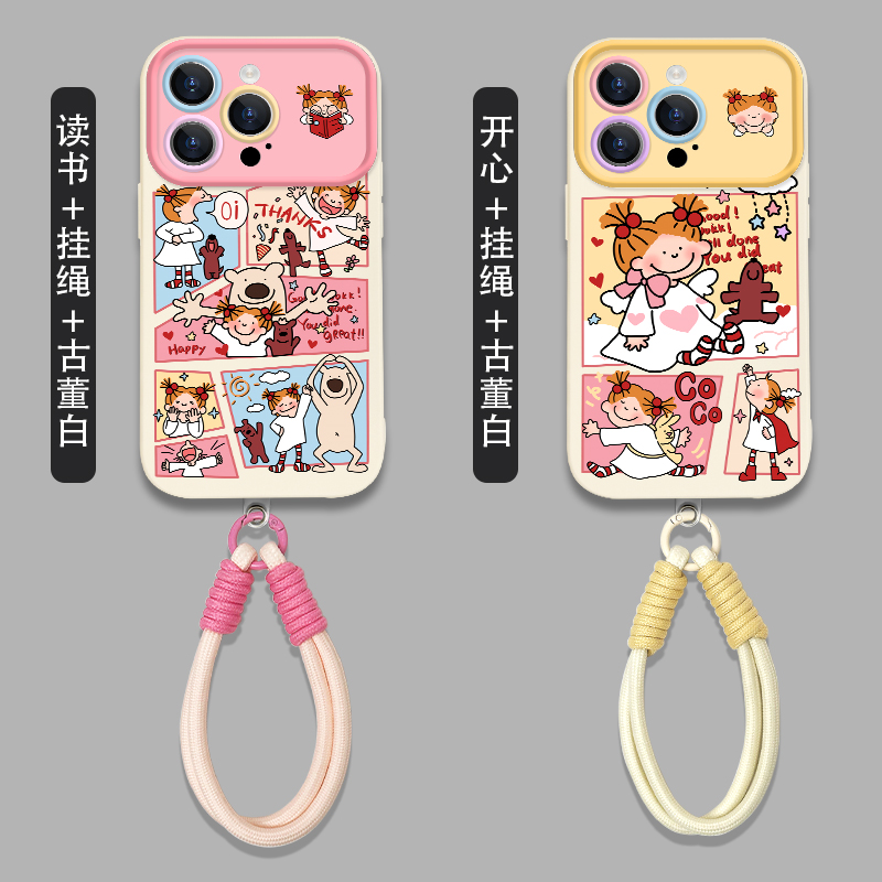 日系coco酱女孩适用于苹果16手机壳硅胶大视窗iPhone15promax防摔软壳12/11防摔挂绳14卡通13不顶膜15全包女