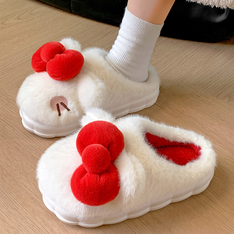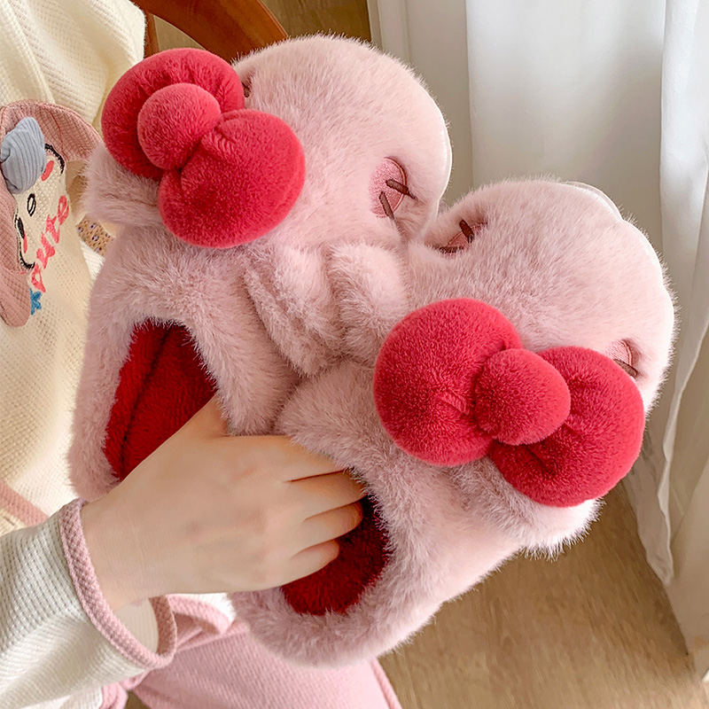 腮红小猫棉拖鞋女士可爱秋冬天2024新款少女心家居室内毛拖鞋外穿