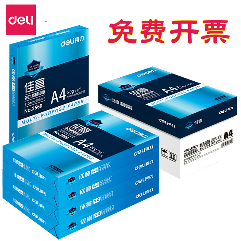 得力A4纸佳宣凯锐铭锐80克A3白纸A5打印纸70g草稿纸塞纳河复印纸