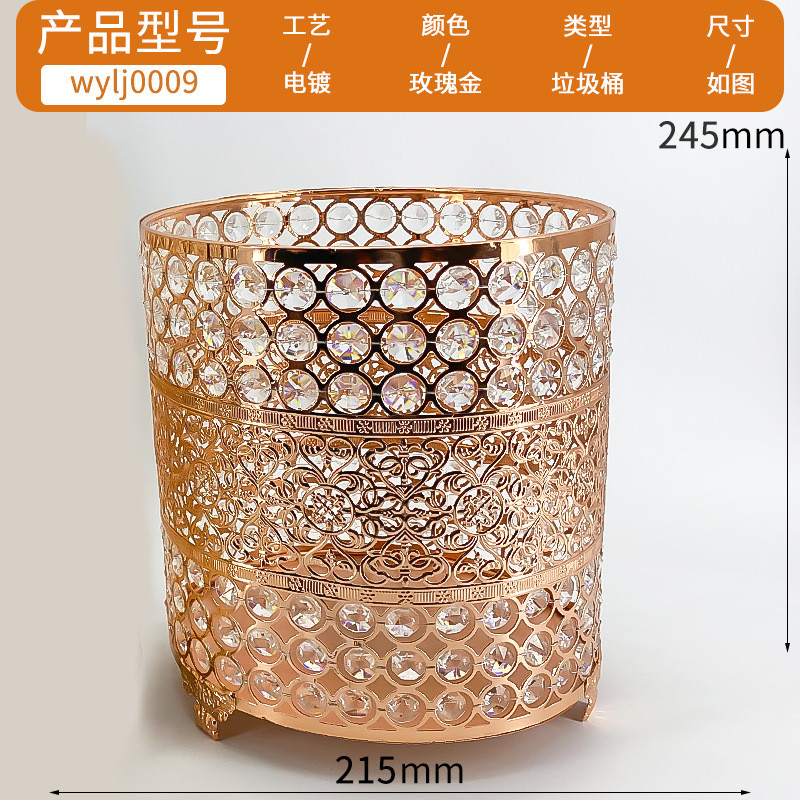 爆款书房水晶垃圾桶轻奢家用无盖垃圾桶圆形创意欧式水晶收纳纸篓
