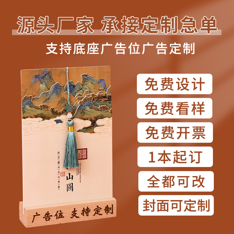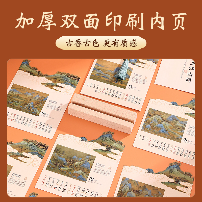 台历千里江山2026台历桌面日历创意异形插卡定制古风办公桌打卡倒计时ins风木质底座定制中国风故宫2026年