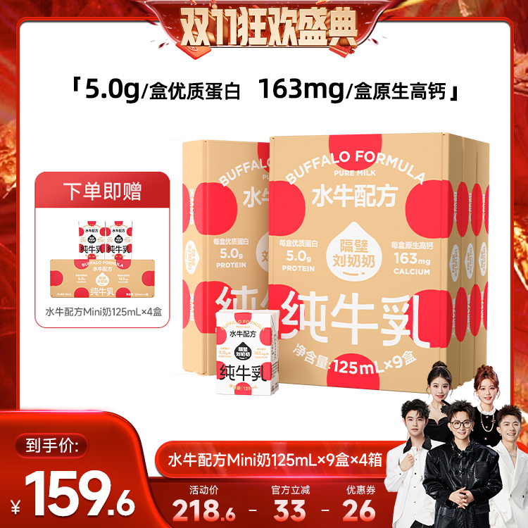 隔壁刘奶奶4.0水牛配方mini纯牛奶125ml*9盒*4箱儿童牛奶学生早餐