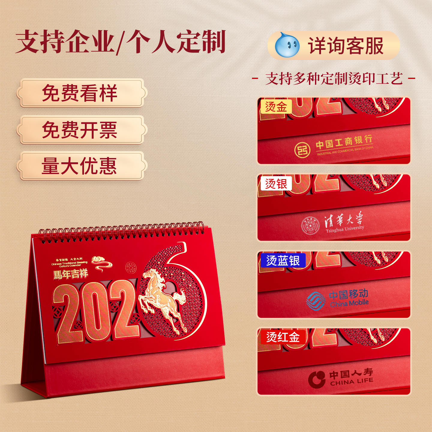 台历定制2026年新款日历来图定做企业台历印刷订制设计马年月历礼品公司logo定做中国红色喜庆创意桌面摆件