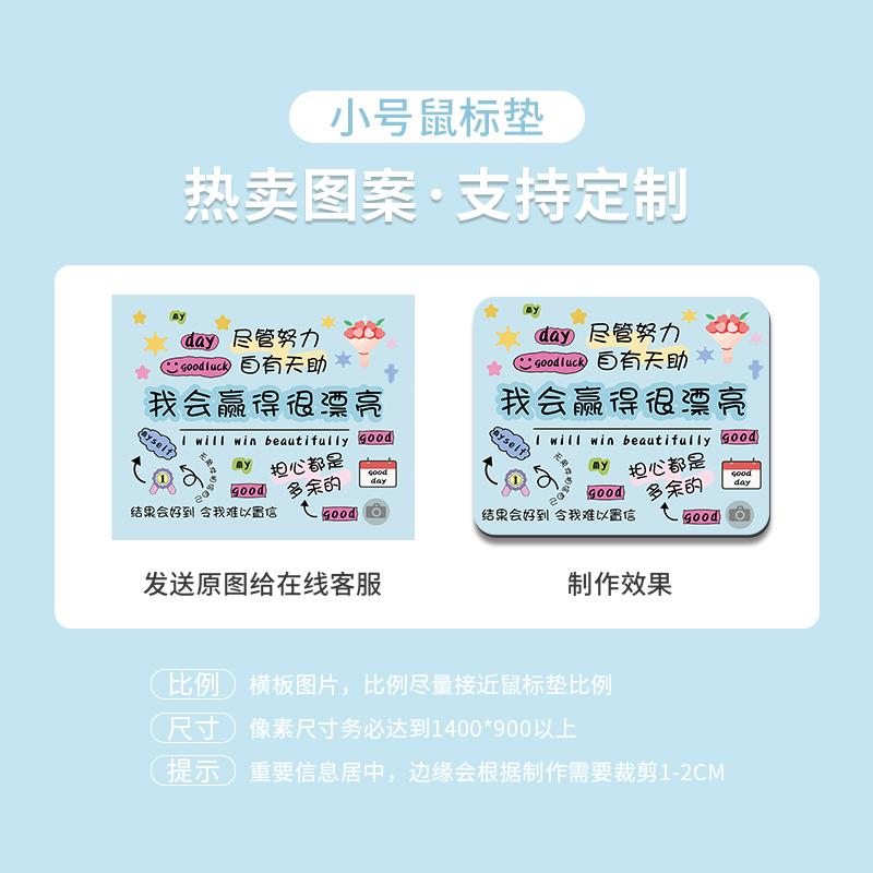 我会赢得很漂亮鼠标垫男生小号便携电脑滑鼠垫办公简约创意文字垫