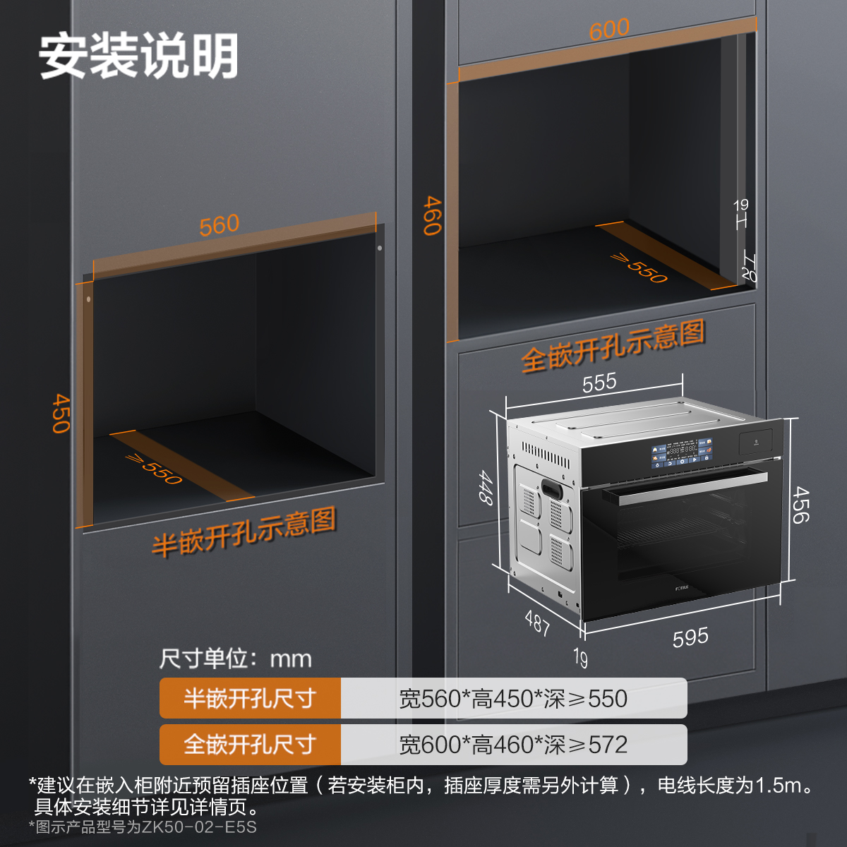 方太蒸烤烘炸炖一体机02-E5S嵌入式电蒸箱烤箱智能多功家用50升
