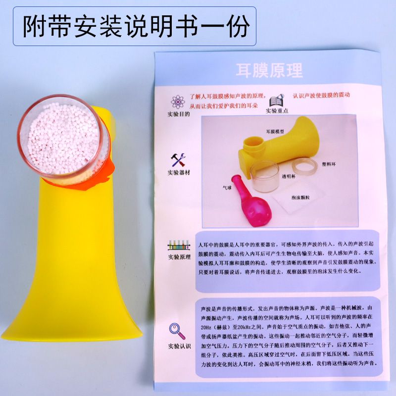 鼓膜耳膜原理制作材料小学科学实验演示教具学具声音由引起鼓膜震