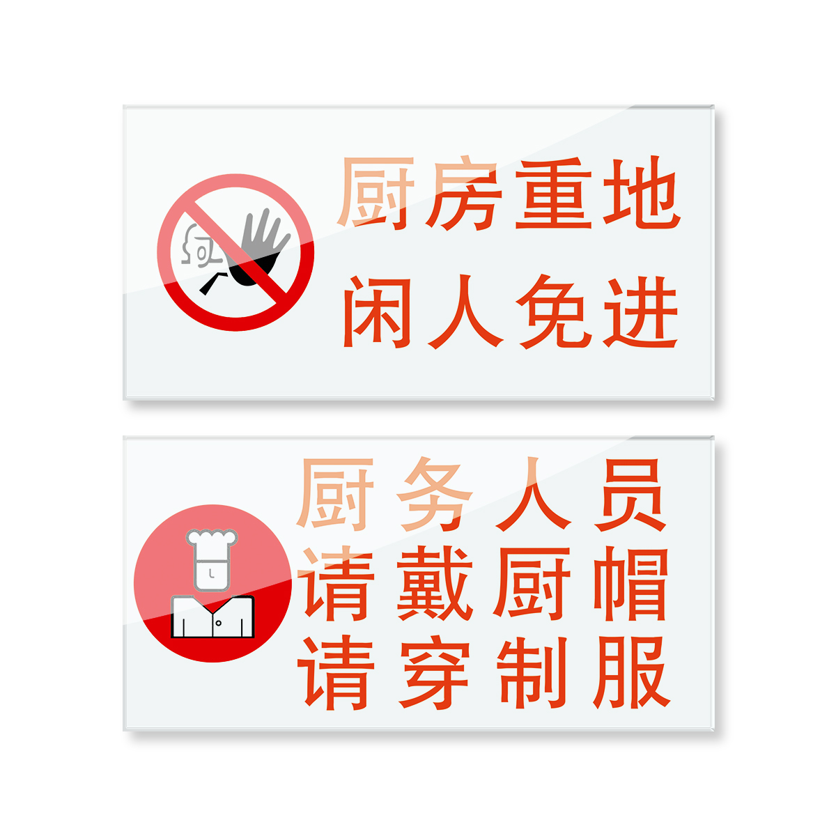 亚克力防水一清二洗三消毒调料区工具分类牌厨房标示牌贴定制荤素4d厨房管理标识饭店餐厅厨房生熟分类标签贴