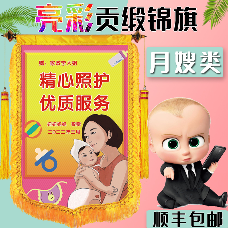 彩色照片锦旗月子中心会所锦旗定做送月嫂金牌产后修复母婴护理感谢服务订制旌旗制作高档旌旗订做旗帜敬旗