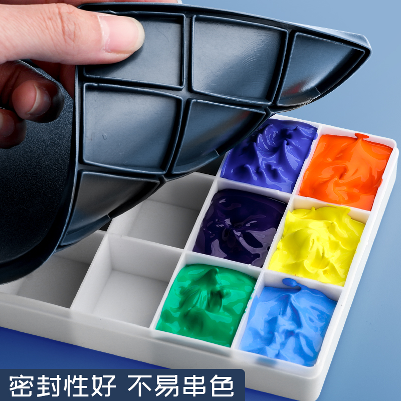 24格软盖颜料盒36格调色盒44格美术生专用水彩画水粉盒便携密封保湿带盖分装空盒丙烯油画正方形大小格子