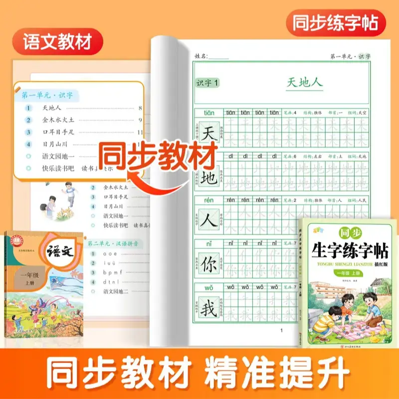 【下单立减50】人教版课本同步点阵生字练字帖一二年级生字练字XJ