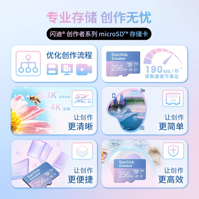 【自营】闪迪TF卡大疆无人机高速内存卡pocket影石action运动相机