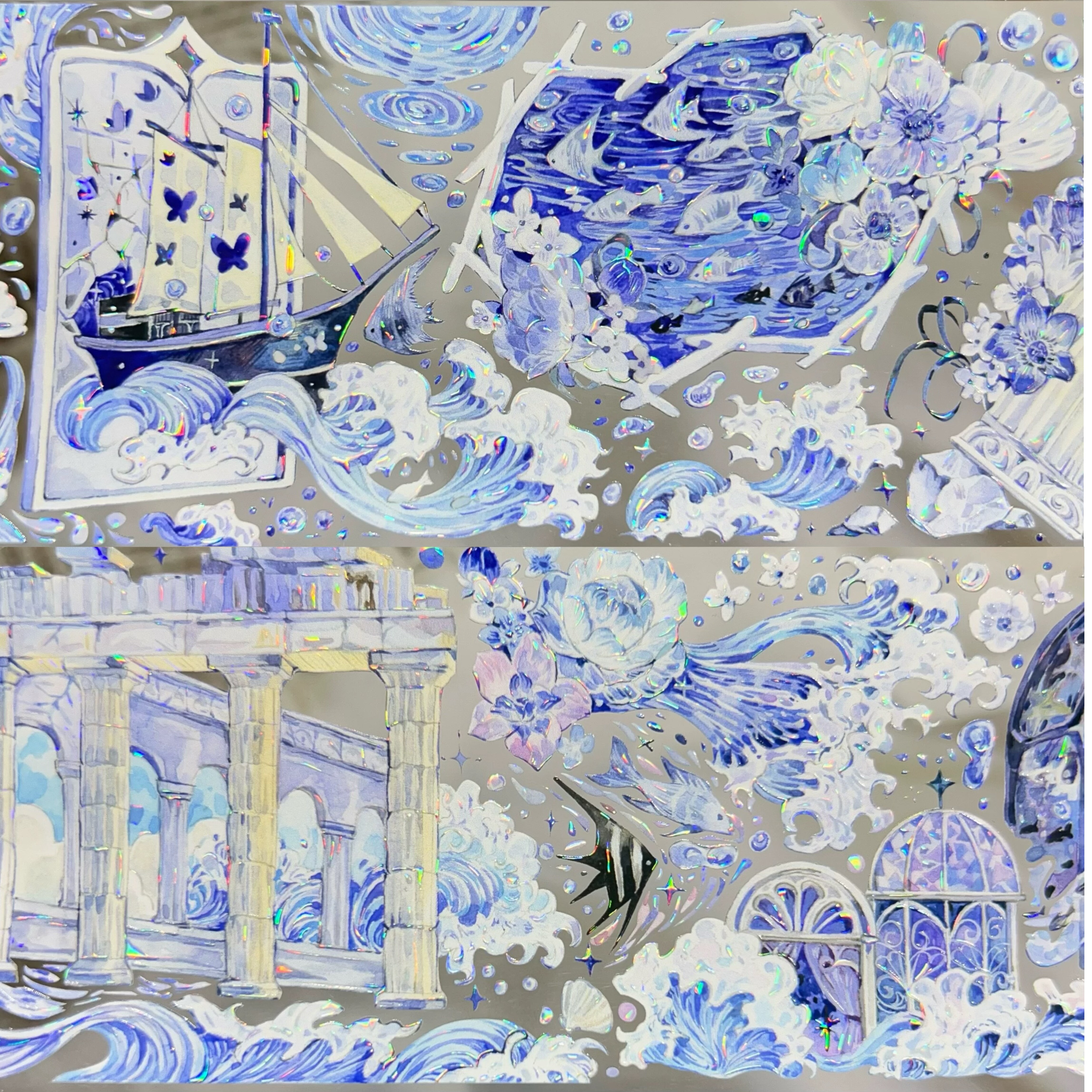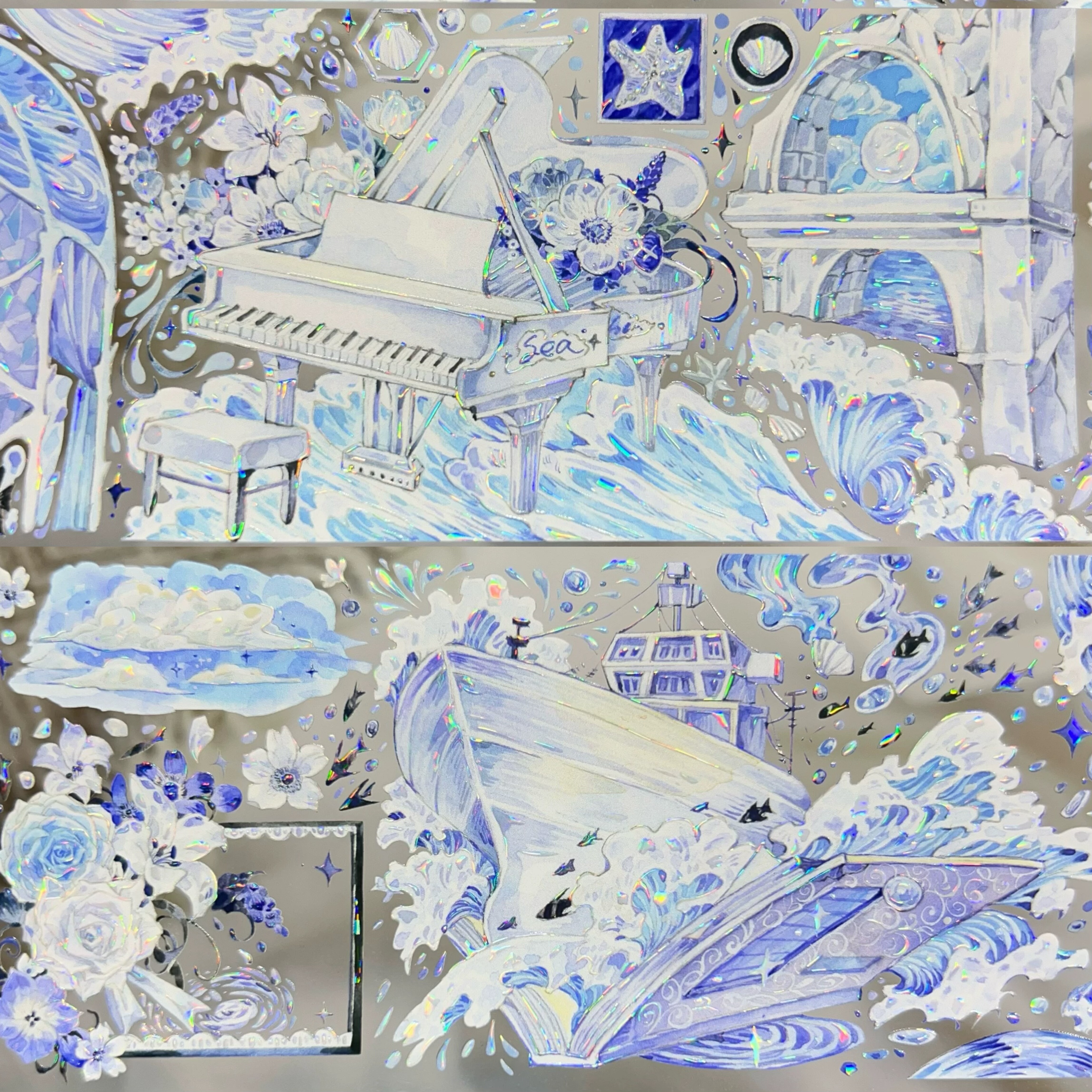 深海回溯 冰川研究所PET贝壳光胶带蓝色系梦幻海洋浪花手帐咕卡素