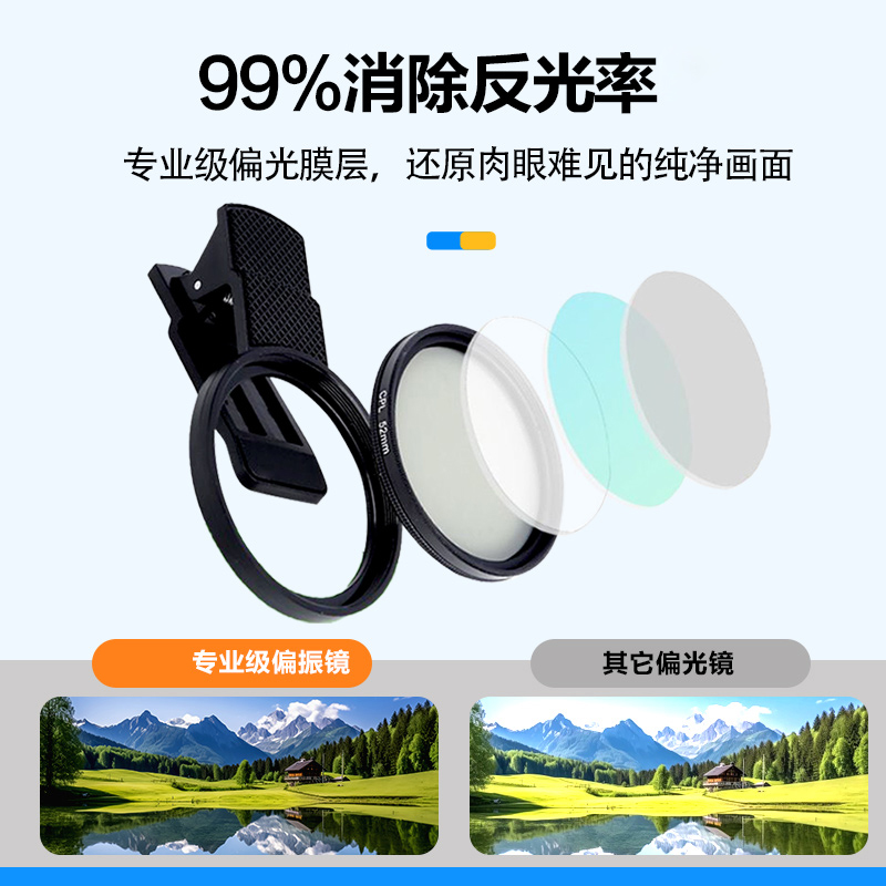 手机偏振镜专用cpl高清镀膜偏光过滤水面反光52mm适用iPhone苹果华为小米通用67mm夹片消除拍照外接摄影头