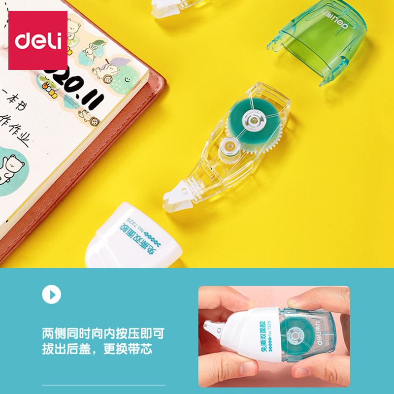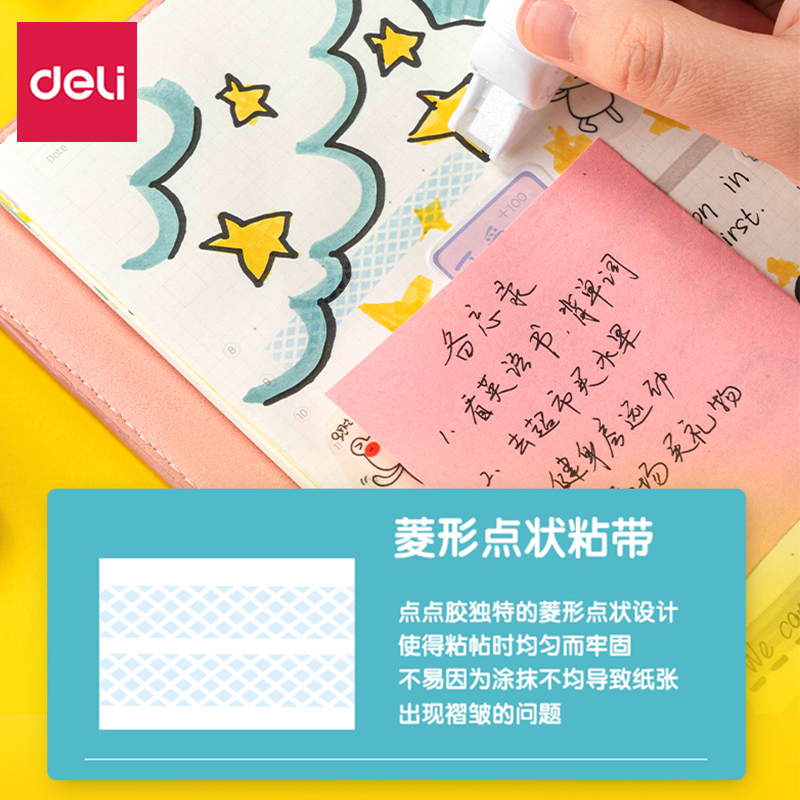 得力免撕双面胶点点胶可换替芯强力点状胶带粘得牢手账DIY无毒幼儿园创意手工胶带多功能透明胶不脏手速干胶