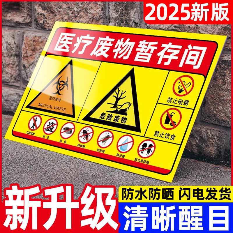 医疗废物标贴新版医疗废物暂存间标识全套2025年新国标医废暂存间点标识损伤性感染性废物标识医疗垃圾标识贴