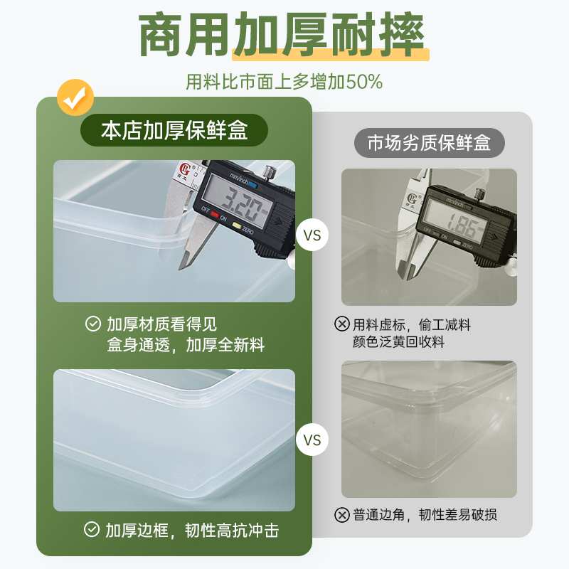 保鲜盒冰箱收纳盒长方形塑料盒子透明密封盒食品级大容量带盖冷冻