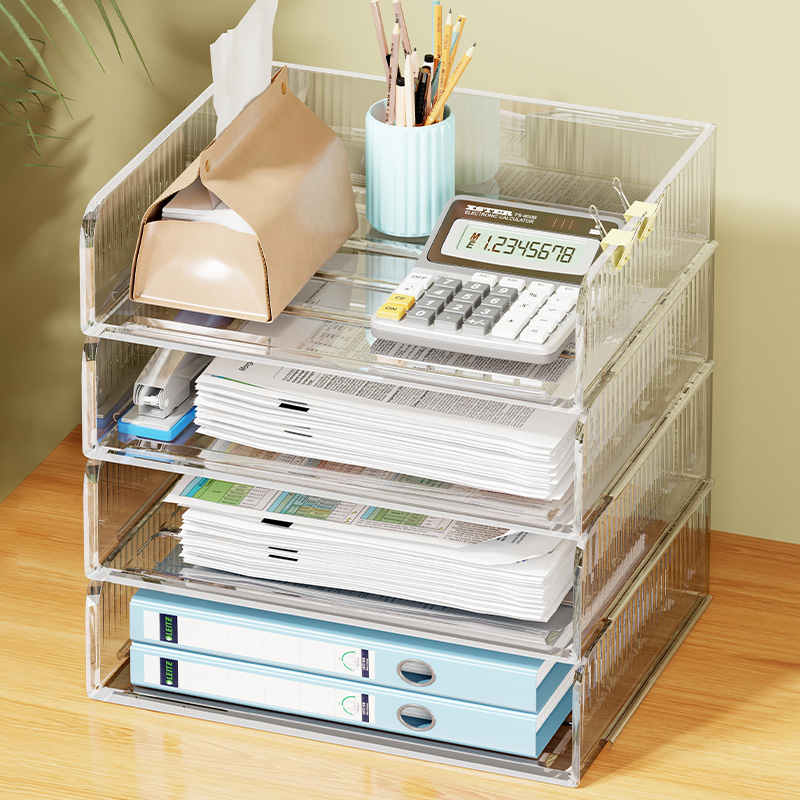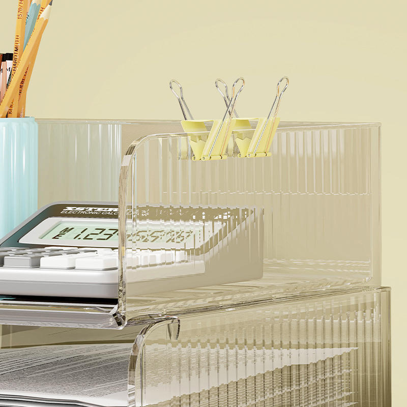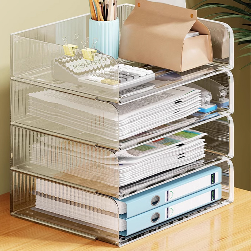 桌面文件收纳架A4纸分层收纳盒办公桌置物架透明亚克力抽屉式整理盒资料档案文件栏办公室工位可叠加书本桌柜