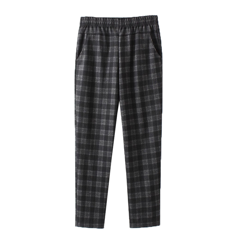 妈妈裤子春秋新款格子长裤中老年人女裤休闲高腰奶奶老太太直筒裤