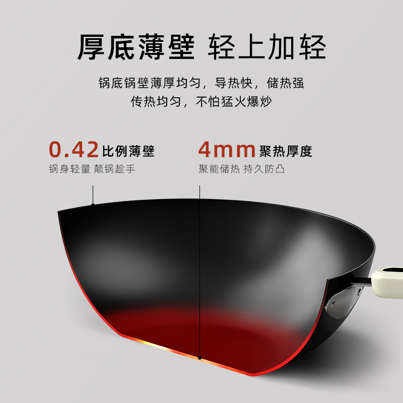 九阳铁锅无涂层炒锅家用炒菜锅不易粘锅电磁炉专用燃气灶旗舰店炊