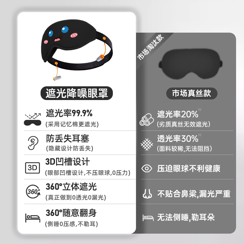 3D立体遮光眼罩安睡降噪睡觉睡眠专用一体静音护眼缓解疲劳轻薄