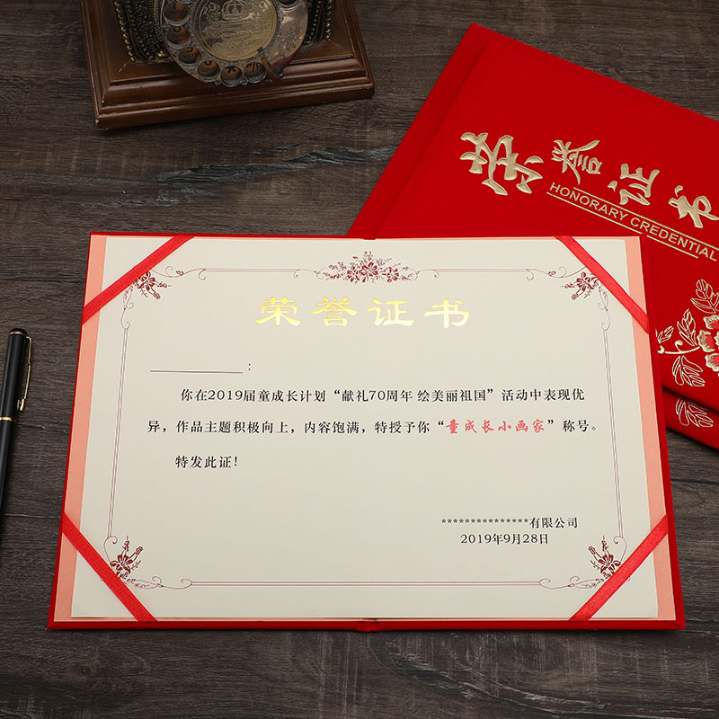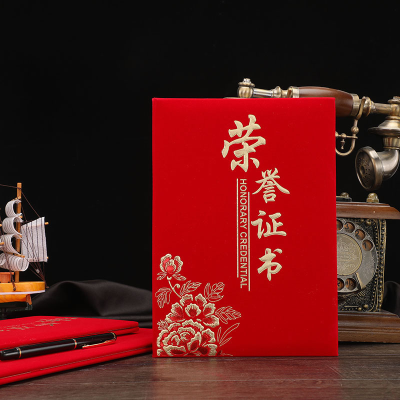 荣誉证书套绒面送内芯页定做可打印烫金制作证书封面外壳LOGO定制公司优秀员工颁奖学校奖励12K奖状一本包邮
