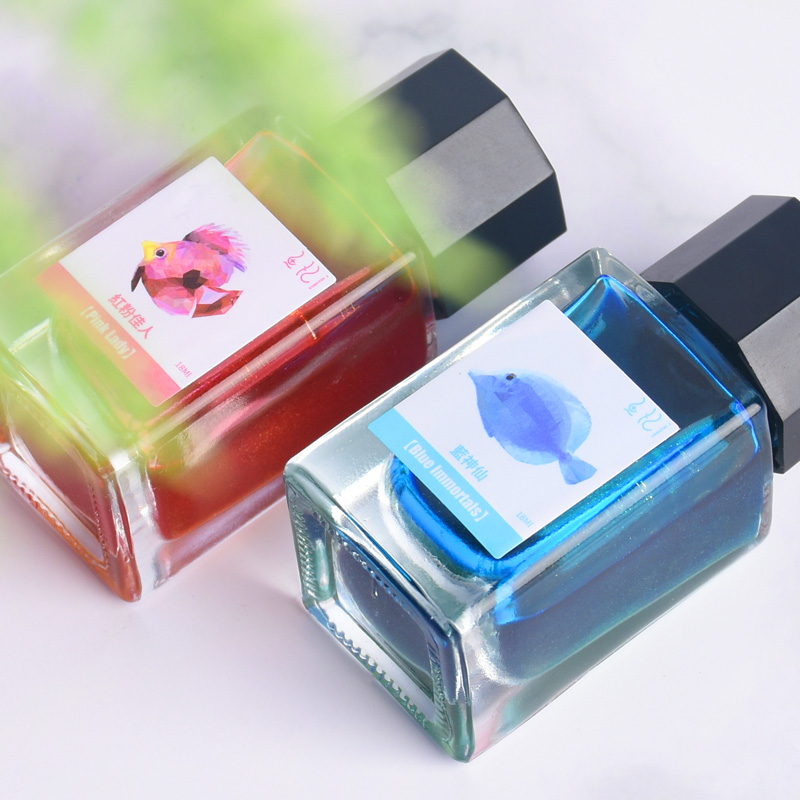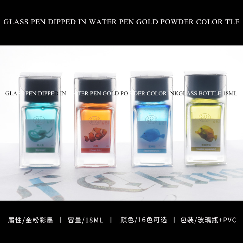 【18ML包邮】蘸水笔玻璃笔渐变色金粉彩墨墨水钢笔非碳素彩墨颜料分装套装女生专用学生用绘画填色美术生用