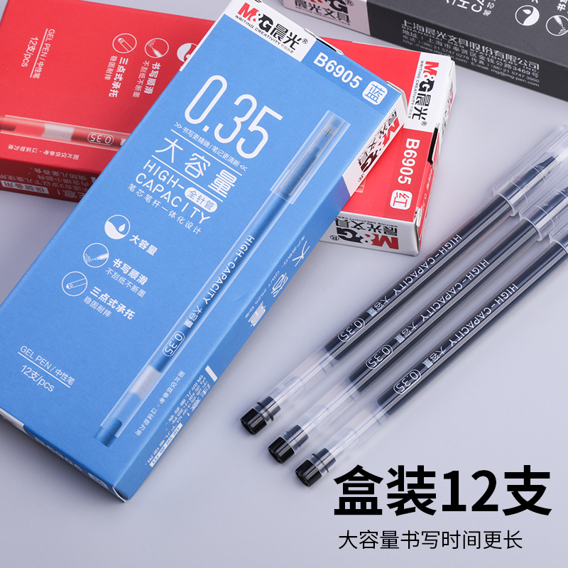 晨光大容量中性笔作业神器全针管0.35mm特细书写财务用笔学生考试笔记笔油性不化笔超长书写黑/蓝/红笔教师笔