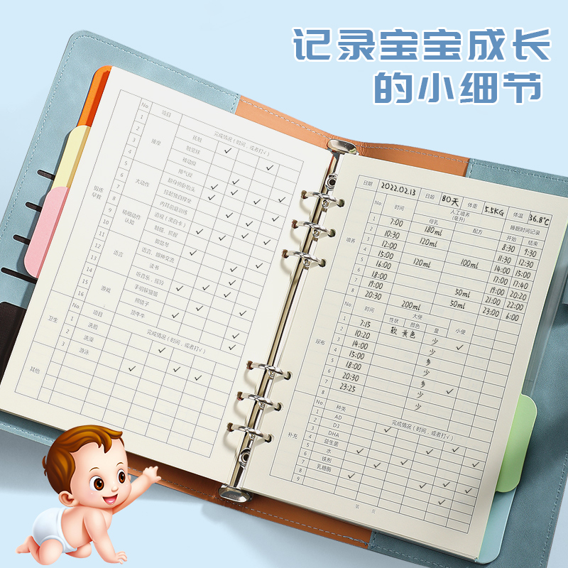 喂养记录本活页婴儿喂奶日记科学养娃新生儿童成长生活发育日常作息笔记本宝宝辅食添加母乳吃奶育儿记录册