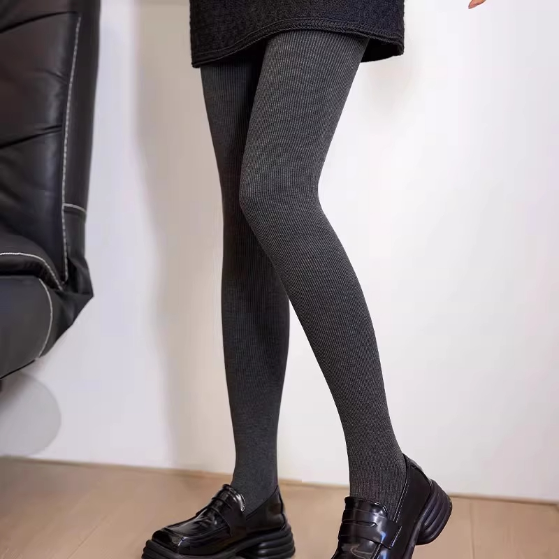 棉伙棉伴灰色连脚裤袜女秋冬外穿黑色踩脚显瘦格雷系提臀打底裤袜