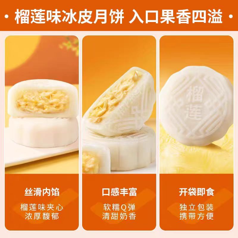 榴莲味冰皮月饼奶黄流心蛋黄月饼中式糕点心中秋送礼品礼盒传统