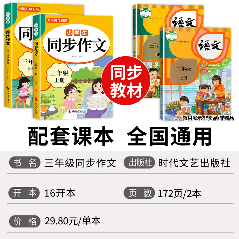 2025三年级上册同步作文配套人教版 3年级下册小学生作文书大全小学语文同步作文三上专项训练优秀作文范文精选每日一练三下新版B