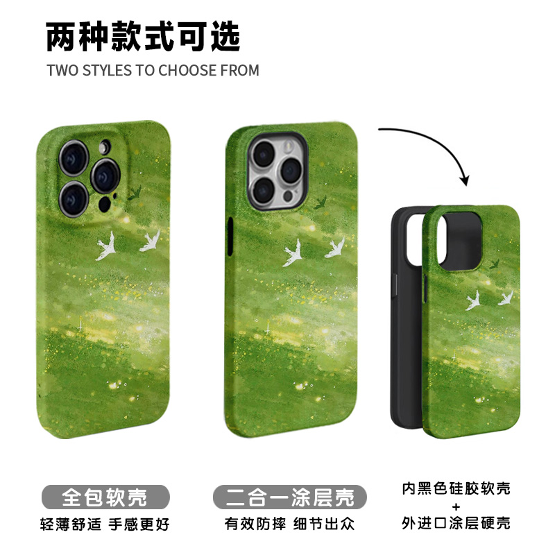 【感受春天】绿色旷野飞鸟适用iPhone16/15pro手机壳华为mate70小米14畅享70vivoS19软iqooneo10苹果14荣耀90
