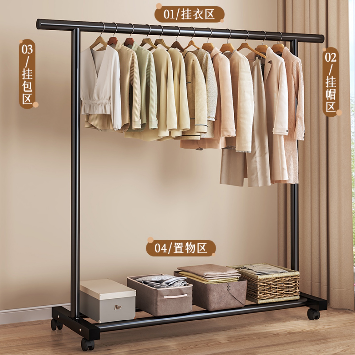 懒角落衣架落地卧室不占空间家用多功能可移动收纳置物架衣服帽架