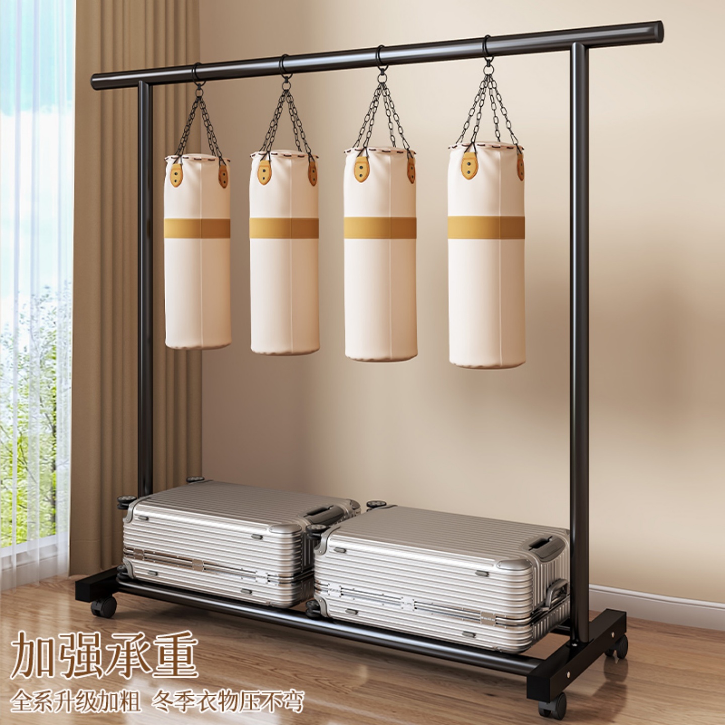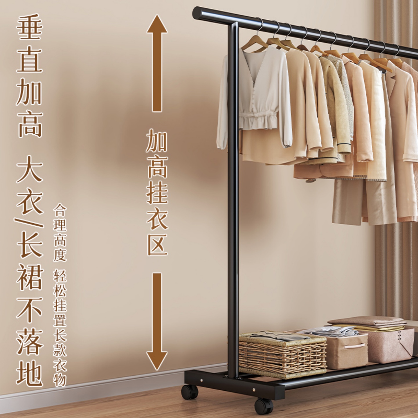高低杆晾衣架落地家用卧室阳台挂衣架简易衣架神器室内置物晾衣杆