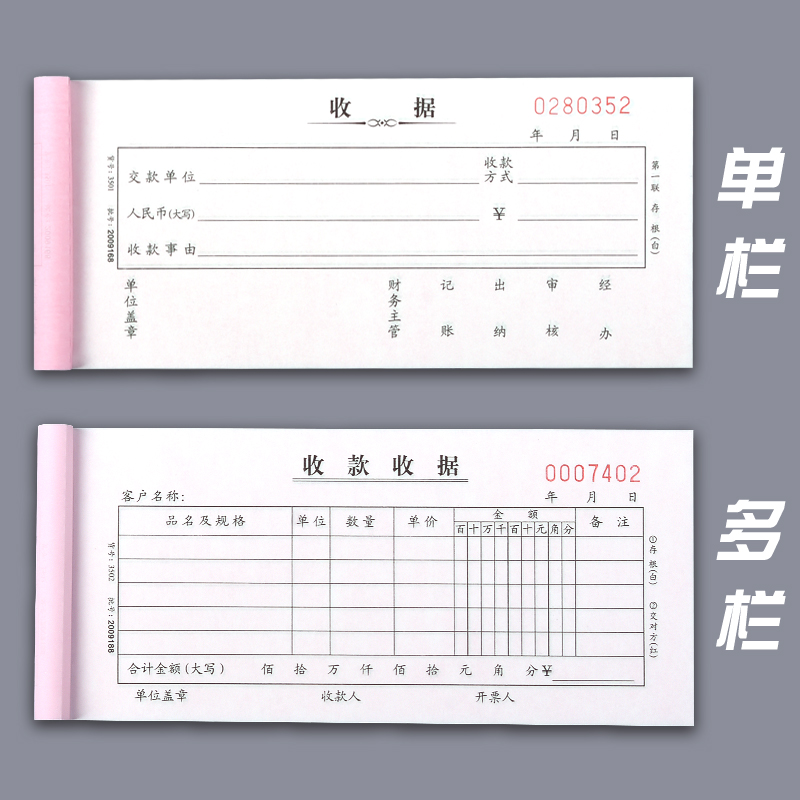 加厚浩立信收据二联三联单栏多栏收款收据无碳复写50份收据单据本两联自带复写可定制定做