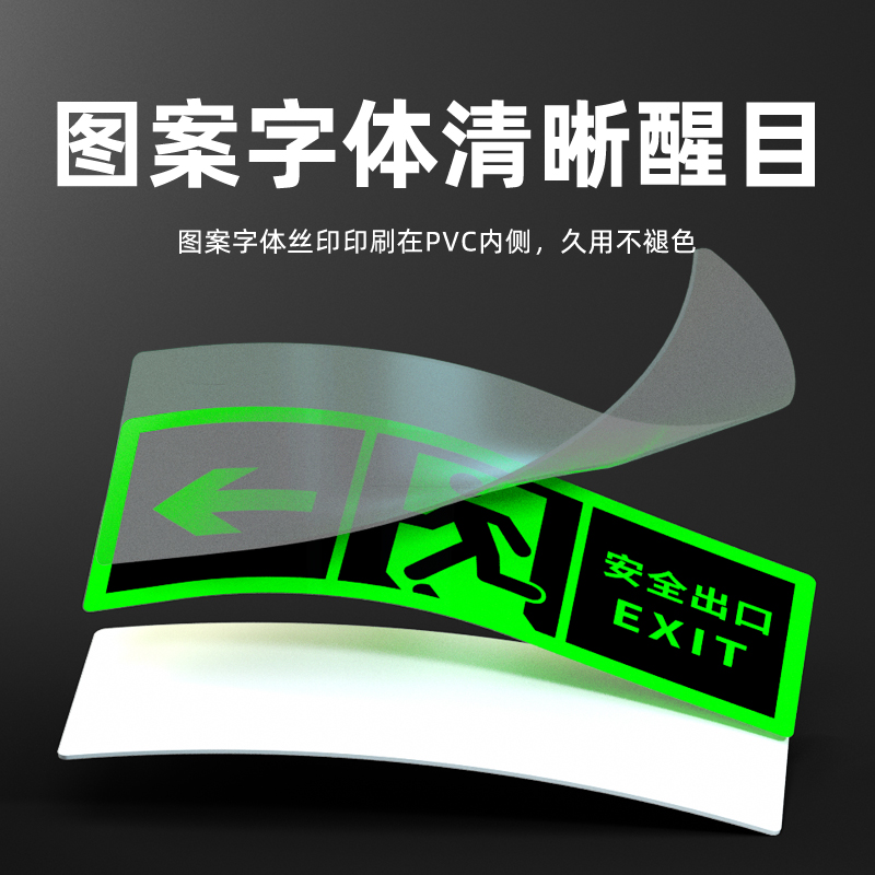 安全出口指示牌直行箭头地贴墙贴消防标识标牌自发光夜光安全疏散逃生应急通道指示贴方向指引标牌免接电贴纸